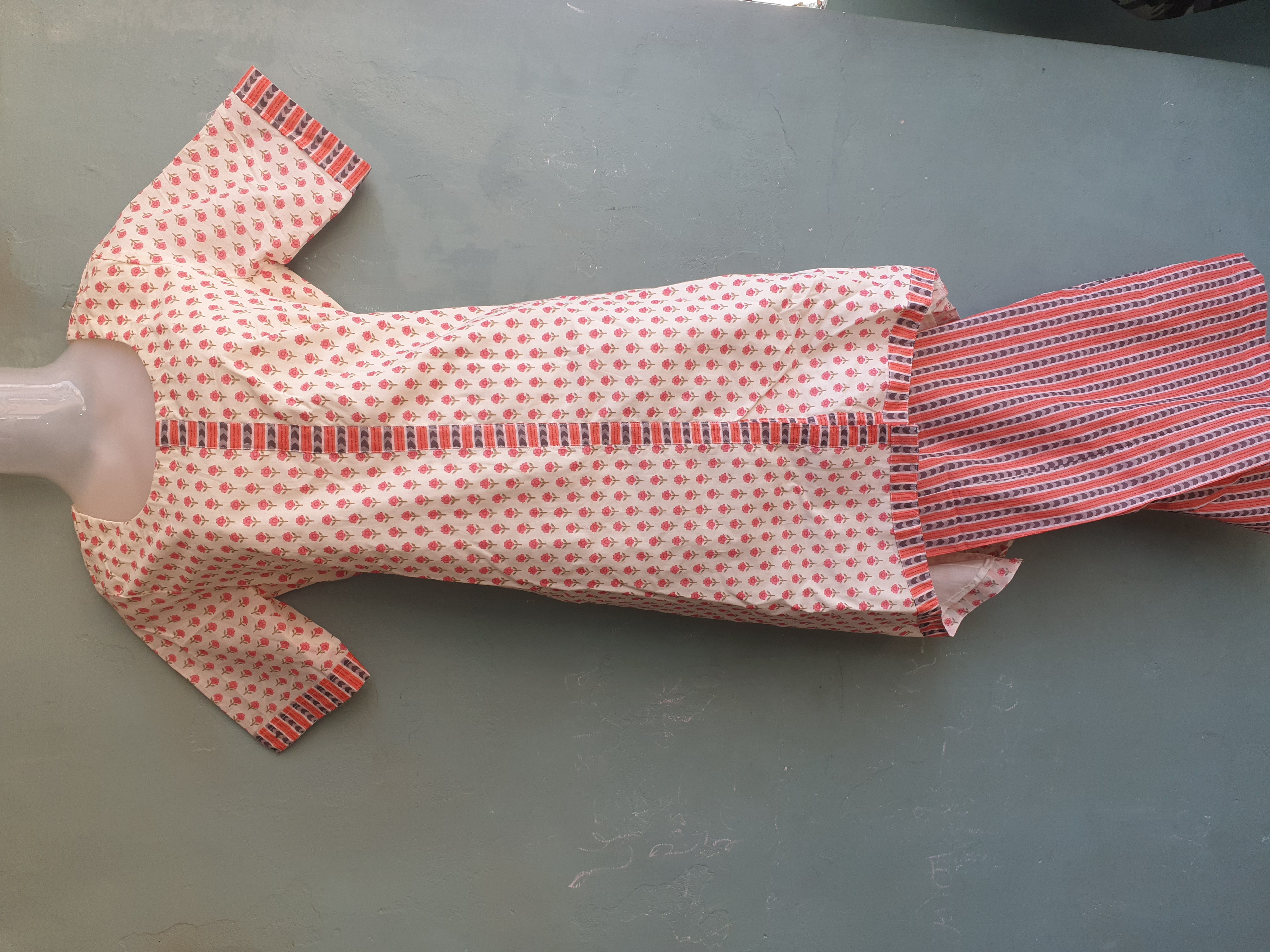 Small Flower Print Cotton Kurti Pant Set with Up and Down Pattern